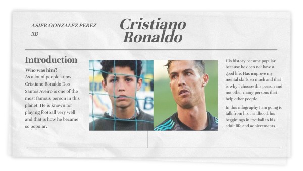 His history became popular because he does not have a good life. Has improve my mental skills so much and that is why I choose this person and not other many persons that help other people.In this infography I am going to talk from his childhood, his begginings in football to his adult life and achievements.