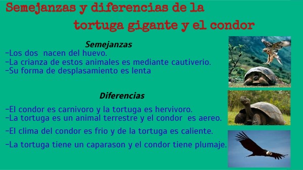 Semejanzas y diferencias de la tortuga gigante y el condor