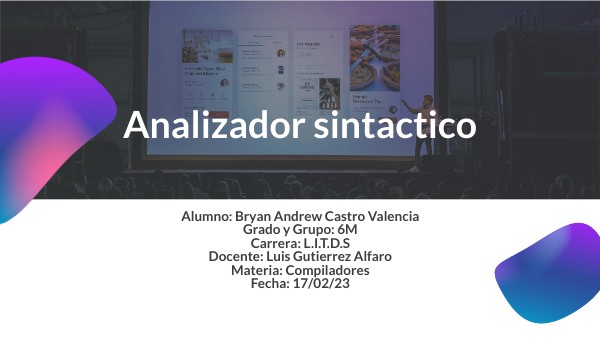 Alumno: Bryan Andrew Castro ValenciaGrado y Grupo: 6M Carrera: L.I.T.D.SDocente: Luis Gutierrez Alfaro Materia: Compiladores Fecha: 17/02/23