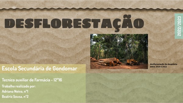 O trabalho realizado no âmbito da disciplina de AI tem como principal objetivo conhecer e dar a conhecer um pouco sobre a desflorestação.Começaremos por dizer o que é, as suas causas, consequências, soluções, que são os locais/países mais afetados por este problema ambiental, vamos mostrar um vídeo, vamos falar sobre o porquê de querermos falar sobre este tema e daremos algumas curiosidades.