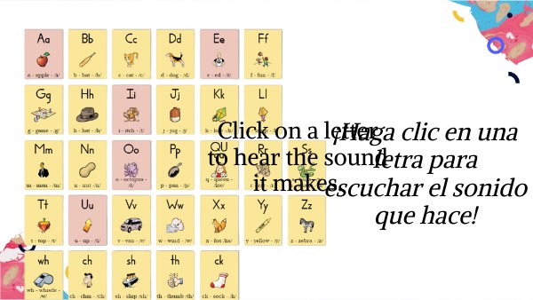 ¡Haga clic en una letra para escuchar el sonido que hace!