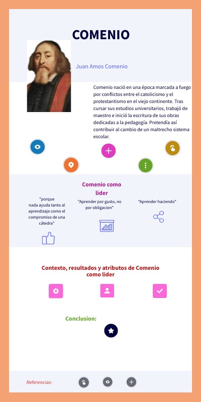 Comenio nació en una época marcada a fuego por conflictos entre el catolicismo y el protestantismo en el viejo continente. Tras cursar sus estudios universitarios, trabajó de maestro e inició la escritura de sus obras dedicadas a la pedagogía. Pretendía así contribuir al cambio de un maltrecho sistema escolar.
