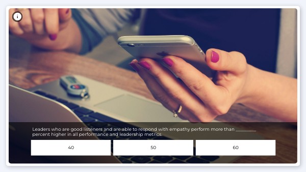 Leaders who are good listeners and are able to respond with empathy perform more than _________ percent higher in all performance and leadership metrics.