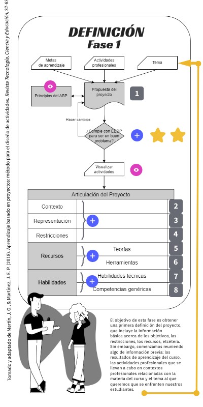 Tomado y adaptado de Martín, J. G., & Martínez, J. E. P. (2018). Aprendizaje basado en proyectos: método para el diseño de actividades. Revista Tecnología, Ciencia y Educación, 37-63.