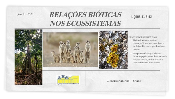 - Interpretar informação relativa a diâmicas populacionais decorrentes de relações bióticas, avaliando as suas onsequências nos ecossistemas.