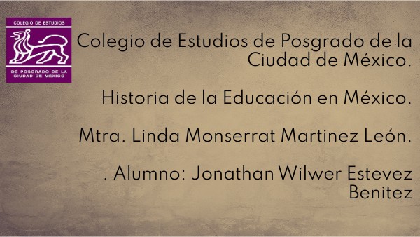 Colegio de Estudios de Posgrado de la Ciudad de México.Historia de la Educación en México. Mtra. Linda Monserrat Martinez León. . Alumno: Jonathan Wilwer Estevez Benitez