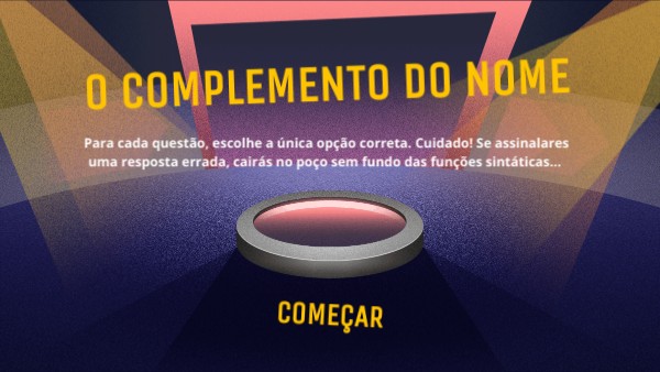 Para cada questão, escolhe a única opção correta. Cuidado! Se assinalares uma resposta errada, cairás no poço sem fundo das funções sintáticas...