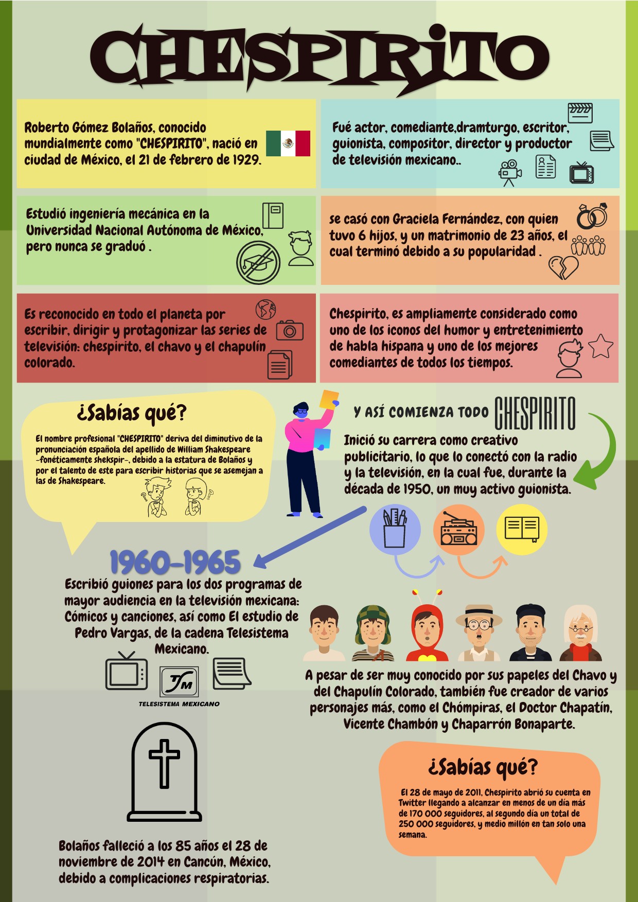 Es reconocido en todo el planeta por escribir, dirigir y protagonizar las series de televisión: chespirito, el chavo y el chapulín colorado.