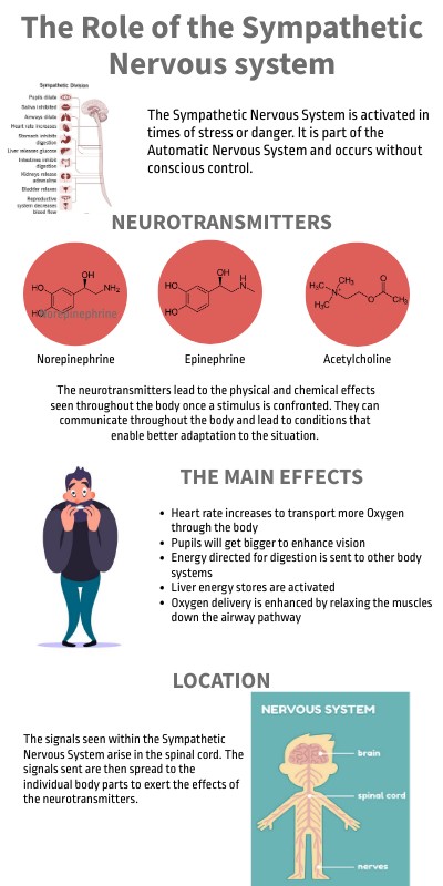 The Sympathetic Nervous System is activated in times of stress or danger. It is part of the Automatic Nervous System and occurs without conscious control.
