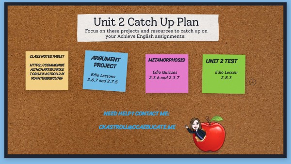 Focus on these projects and resources to catch up on your Achieve English assignments!