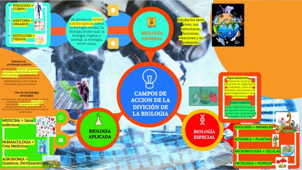enfoca en un grupo particular de organismos o sistemas, como los animales, las plantas, los microorganismos o los ecosistemas.