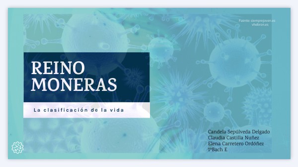 https://www.unprofesor.com/ciencias-naturales/biparticion-definicion-y-ejemplos-3022.html https://portalacademico.cch.unam.mx/biologia2/caracteristicas-generales-dominios-y-reinos/reino-monera https://www.univision.com/explora/11-cosas-que-quiza-no-sabias-sobre-las-bacterias https://www.ecologiaverde.com/reino-monera-que-es-caracteristicas-clasificacion-y-ejemplos-2319.html https://microbiologia.net/bacterias/bacterias-fotosinteticas/ https://es.taylrrenee.com/obrazovanie/89278-bakterii-hemosinteziruyuschie-primery-rol-hemosinteziruyuschih-bakteriy.html https://www.tiempo.com/ram/cianobacterias-como-indicadores-del-cambio-climatico.html https://etiquetalia.es/mascotas/bacterias-simbioticas-reino-animal/ https://www.muyfitness.com/enfermedades-producidas-por-moneras_13112787/ https://www.movilzona.es/2020/02/26/bacterias-habituales-movil/ https://www.huffingtonpost.es/2014/06/24/bacterias-telefono-movil_n_5524702.html https://www.elconfidencial.com/alma-corazon-vida/2020-05-06/limpiar-tu-movil-estudios-expertos_2580400/ https://microbacterium.es/por-que-huele-la-lluvia https://intriper.com/lugares-del-mundo-para-ver-bioluminiscencia/ https://divercienciaalgeciras.com/wp-content/uploads/2015/05/BIOLUMINISCENCIA- FINAL.pdf