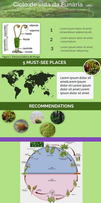 - A funária é uma planta muito simples e pouco diferenciada, geralmente não atinge mais que 1 ou 2 cm de altura, e forma maciços com centenas de indivíduos, o que lhe permite manter mais eficientemente a humidade de que necessita.