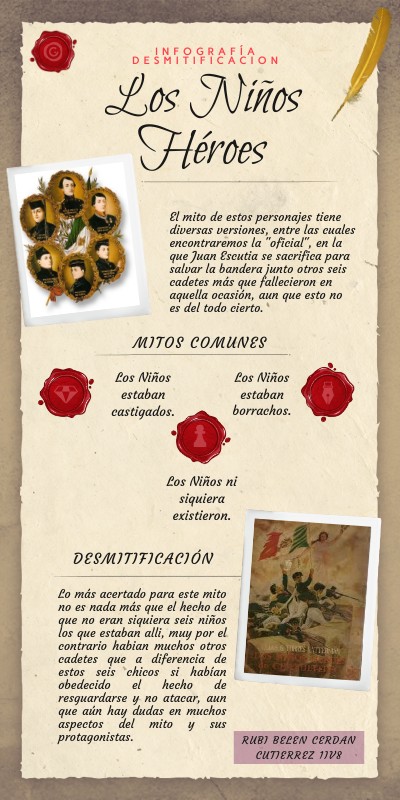 El mito de estos personajes tiene diversas versiones, entre las cuales encontraremos la "oficial", en la que Juan Escutia se sacrifica para salvar la bandera junto otros seis cadetes más que fallecieron en aquella ocasión, aun que esto no es del todo cierto.