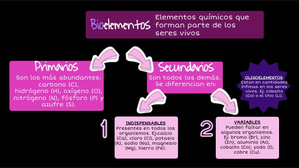 OLIGOELEMENTOS: Estan en cantidades ínfimas en los seres vivos. Ej: cobalto (Co) o el litio (Li).