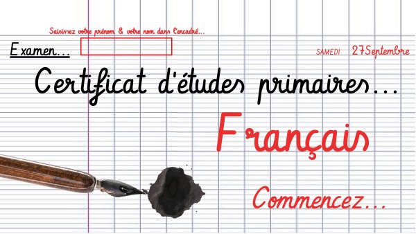 Relevez le défi... Mettez-vous dans la peau d'un écolier du début du XXe siècle et testez vos connaissances pour voir si vous l'obtiendriez... Bon courage ! ! !