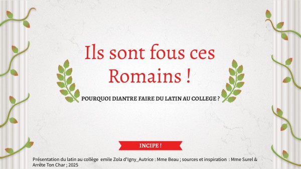 Présentation du latin au collège emile Zola d'Igny_Autrice : Mme Beau ; sources et inspiration : Mme Surel & Arrête Ton Char ; 2025