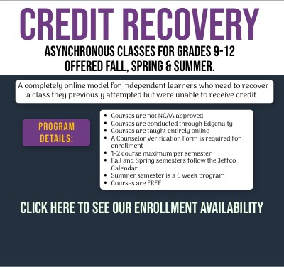 Asynchronous classes for grades 9-12 offered Fall, Spring & Summer.