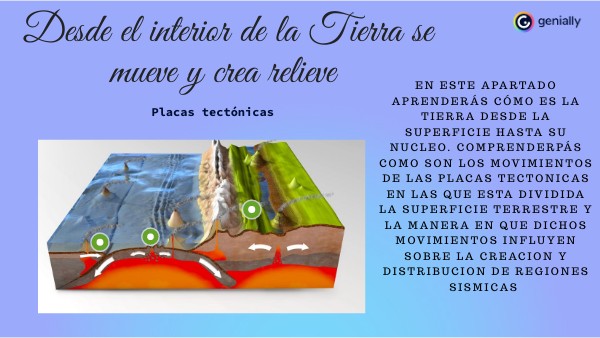 en este apartado aprenderás cómo es la tierra desde la superficie hasta su nucleo. comprenderpás como son los movimientos de las placas tectonicas en las que esta dividida la superficie terrestre y la manera en que dichos movimientos influyen sobre la creacion y distribucion de regiones sismicas