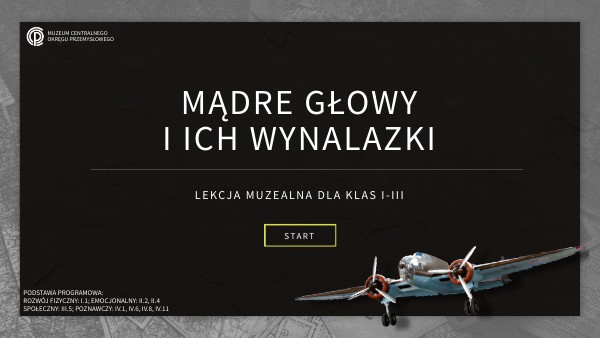 1. Przed każdym z zadań zapoznaj się z materiałem edukacyjnym w formie teksu, filmu lub zdjęć. Znajdziesz go zwiedzając Wirtualne Muzeum COP. Tam będą również ukryte podpowiedzi w multimedialnych znacznikach.2. Wróć do zadania i zaznacz właściwą odpowiedź.3. Po jej wypełnieniu zostaniesz przeniesiony do kolejnego zadania.4. Z każdego poziomu zawsze możesz wrócić do Wirtualnego Muzeum.5. Po poprawnym rozwiązaniu wszystkich zadań otrzymasz dyplom ukończenia lekcji.Interaktywne elementy zazwyczaj oznaczone są kolorem zielonym.POWODZENIA