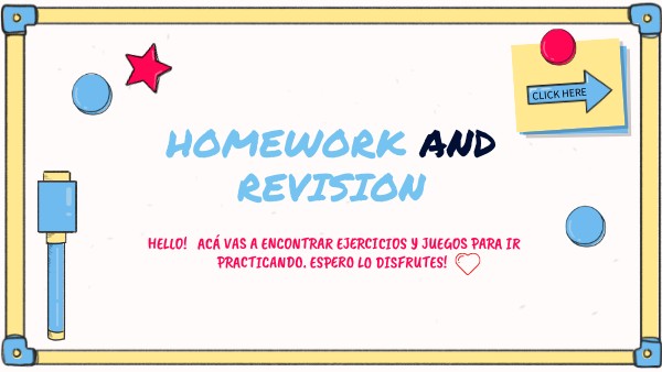 HELLO! ACÁ VAS A ENCONTRAR EJERCICIOS Y JUEGOS PARA IR PRACTICANDO. ESPERO LO DISFRUTES!