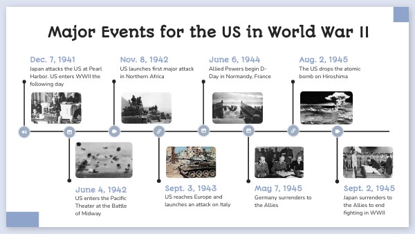 Japan attacks the US at Pearl Harbor. US enters WWII the following day