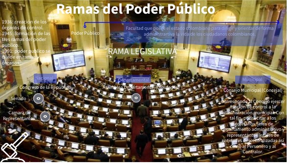 1936: creación de los órganos de control. 1945: formación de las tres ramas del poder publico. 1991: poder publico se divide en ramas y órganos.