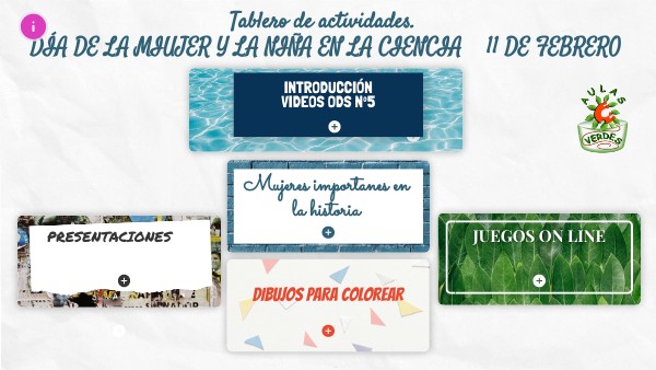 Tablero de actividades. DÍA DE LA MIUJER Y LA NIÑA EN LA CIENCIA 11 DE FEBRERO