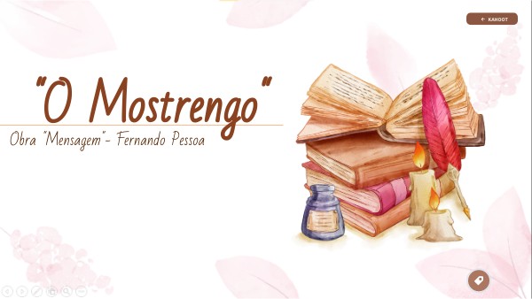 O mostrengo que está no fim do mar Na noite de breu ergueu-se a voar; À roda da nau voou três vezes, Voou três vezes a chiar, E disse: «Quem é que ousou entrar Nas minhas cavernas que não desvendo, Meus tetos negros do fim do mundo?» E o homem do leme disse, tremendo: «El-Rei D. João Segundo!»