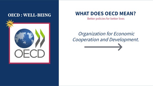The OECD's mission is to implement policies that will improve the economic and social well-being of people around the world.