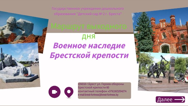224018 г.Брест ул. Героев обороны Брестской крепости 60 контактный телефон +375(162)254274 e-mail:brest-fortress@brest-fortress.by