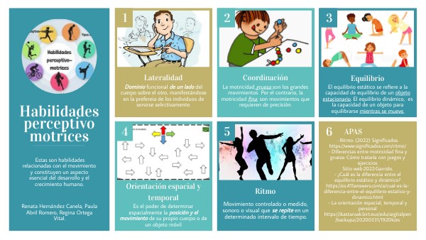 - Ritmo. (2022) Significados. https://www.significados.com/ritmo/- Diferencias entre motricidad fina y gruesa: Cómo tratarla con juegos y ejercicios Sitio web·2022·Garrido. - ¿Cuál es la diferencia entre el equilibrio estático y dinámico? https://es.411answers.com/a/cual-es-la-diferencia-entre-el-equilibrio-estatico-y-dinamico.html - La orientación espacial, temporal y personal https://ikastaroak.birt.eus/edu/argitalpen/backupa/20200331/1920k/es