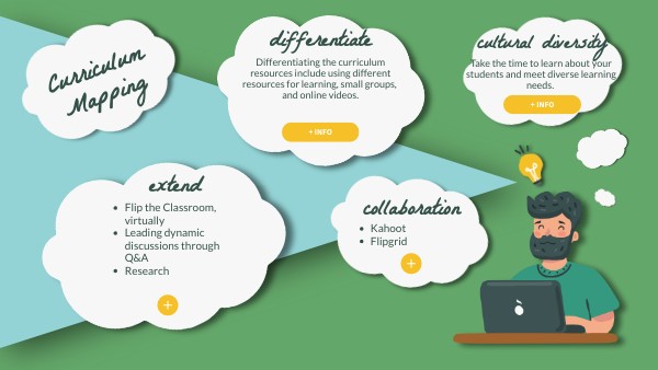 Differentiating the curriculum resources include using different resources for learning, small groups, and online videos.
