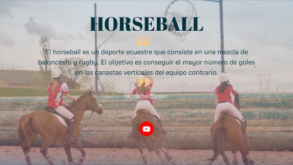 El horseball es un deporte ecuestre que consiste en una mezcla de baloncesto y rugby. El objetivo es conseguir el mayor número de goles en las canastas verticales del equipo contrario.