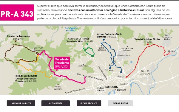 Superar el reto que conlleva salvar la distancia y el desnivel que unen Córdoba con Santa María de Trassierra, atravesando enclaves con un alto valor ecológico e histórico-cultural, son algunas de las motivaciones para realizar esta ruta. Para ello usaremos la Vereda de Trassierra, camino milenario que parte de la ciudad, llega hasta Trassierra y continúa su recorrido por el término municipal de Villaviciosa.