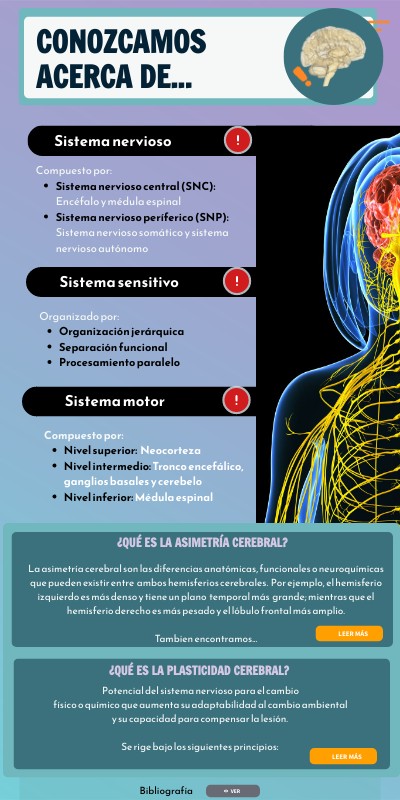 - Sistema nervioso períferico (SNP): Sistema nervioso somático y sistema nervioso autónomo