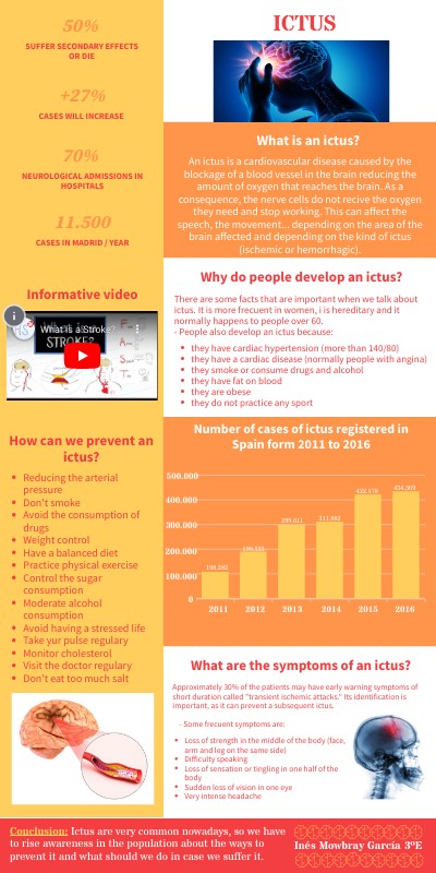 Conclusion: Ictus are very common nowadays, so we have to rise awareness in the population about the ways to prevent it and what should we do in case we suffer it.
