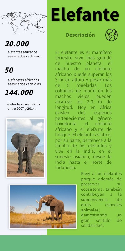 Elegí a los elefantes porque además de preservar su ecosistema, también contribuyen a la supervivencia de otras especies animales, demostrando un gran sentido de solidaridad.