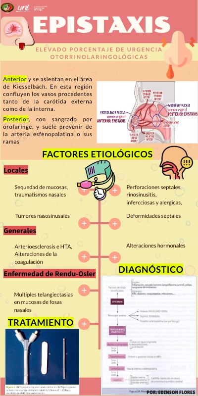 Anterior y se asientan en el área de Kiesselbach. En esta región confluyen los vasos procedentes tanto de la carótida externa como de la interna.Posterior, con sangrado por orofaringe, y suele provenir de la arteria esfenopalatina o sus ramas