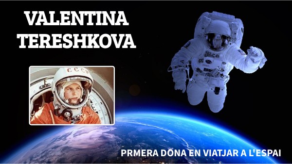 - COSMONAUTA RUSSA, LA PRIMERA DONA EN LA HISTÒRIA QUE VA VIATJAR A L'ESPAI. - QUAN TENIA 2 ANYS, VA MORIR EL SEU PARE A LA SEGONA GUERRA MUNDIAL. - LA SEVA MARE TREBALLAVA EN UNA FÀBRICA DE GELATS. - VALENTINA TENIA DOS GERMANS. - QUAN ERA PETITA, VALENTINA VOLIA SER CONDUCTORA DE TRENS. - VA APRENDRE A FER PARACAIDISME. - VA ESTUDIAR, EN SECRET, PER SER ASTRONAUTA DURANT 2 ANYS. - L'ANY 1963, VA COMPLETAR 48 ÒRBITES AL VOLTANT DE LA TERRA TOTA SOLA DURANT TRES DIES.