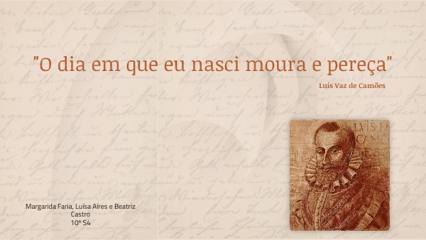 - O poema foi escrito por Luís Vaz de Camões no século XVI.