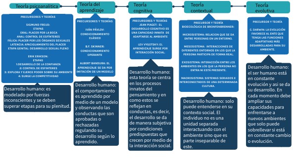 Desarrollo humano: esta teoría se centra en los procesos innatos del pensamiento y en como estos se reflejan en conductas, es decir, el desarrollo se da de manera subjetiva por condiciones predispuestas que crecen por medio de la interacción social.