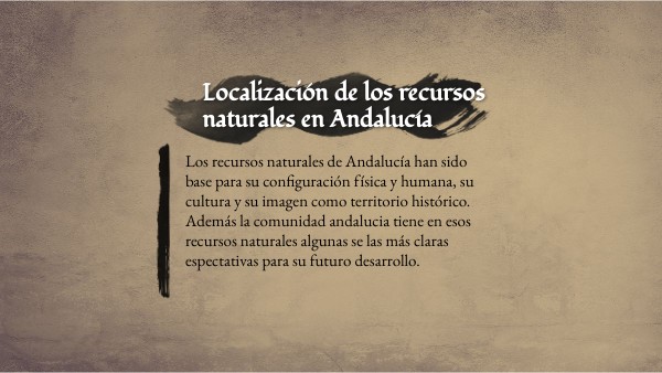Los recursos naturales de Andalucía han sido base para su configuración física y humana, su cultura y su imagen como territorio histórico. Además la comunidad andalucia tiene en esos recursos naturales algunas se las más claras espectativas para su futuro desarrollo.