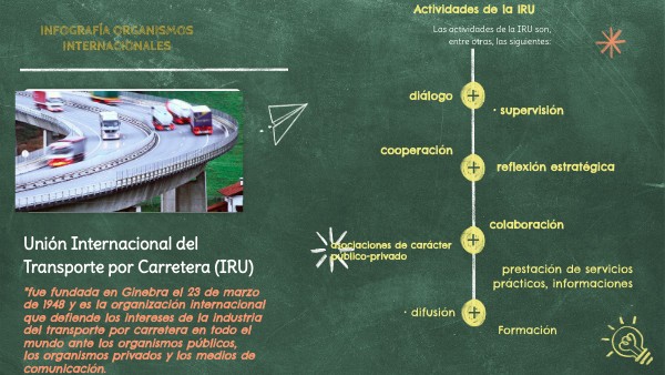 Las actividades de la IRU son, entre otras, las siguientes: