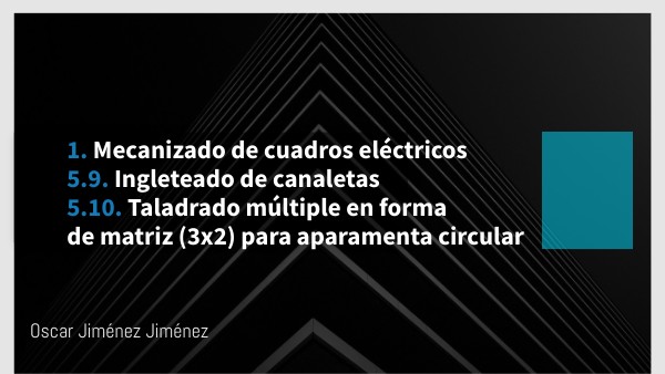 1. Mecanizado de cuadros eléctricos 5.9. Ingleteado de canaletas 5.10. Taladrado múltiple en forma de matriz (3x2) para aparamenta circular