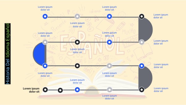 a infografía de tipo, línea de tiempo, acerca del tema “Historia del idioma español”.