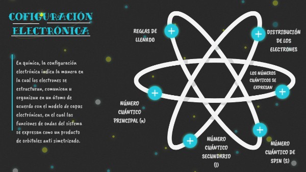 En química, la configuración electrónica indica la manera en la cual los electrones se estructuran, comunican u organizan en un átomo de acuerdo con el modelo de capas electrónicas, en el cual las funciones de ondas del sistema se expresan como un producto de orbitales anti simetrizado.