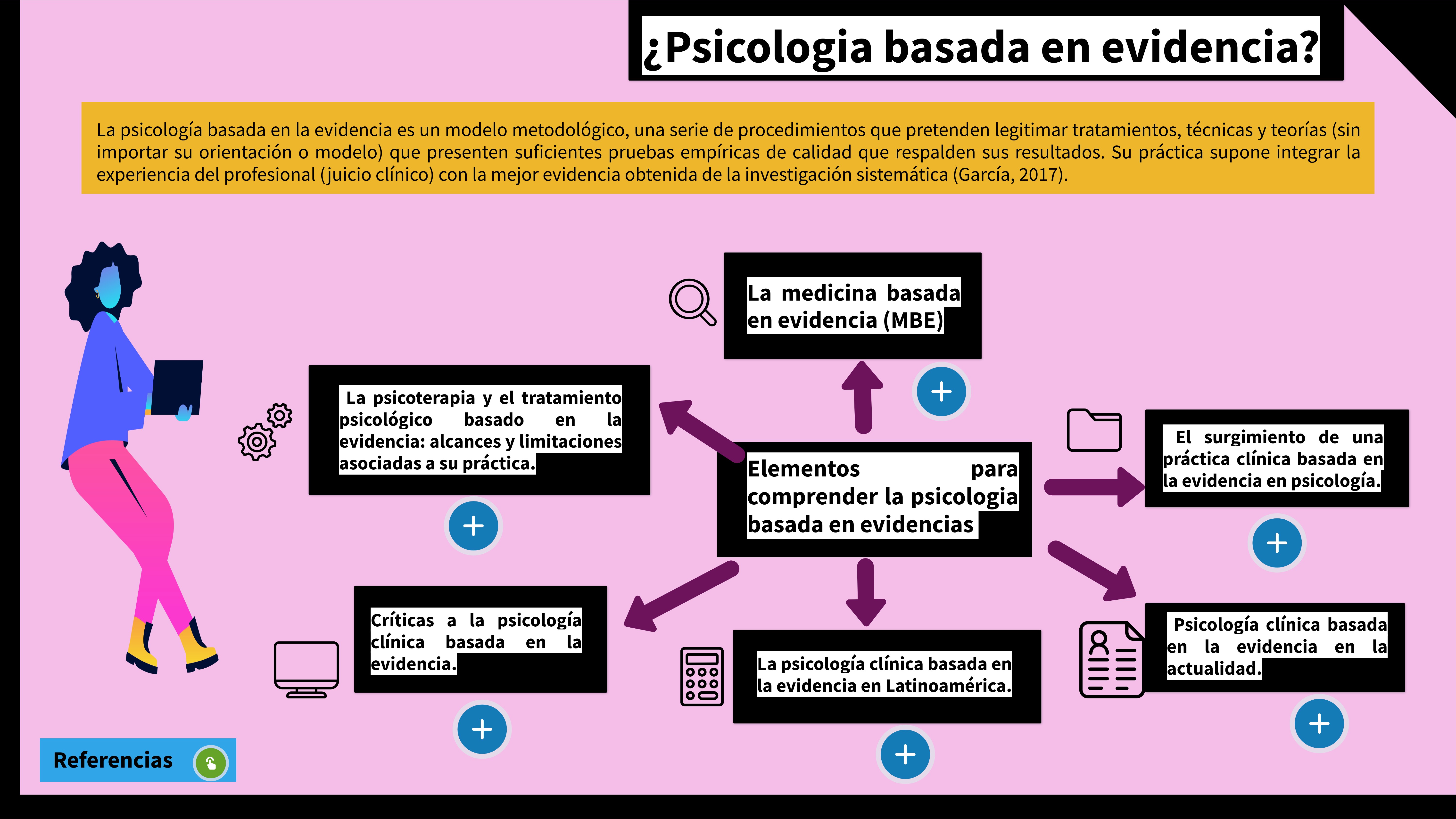 La psicología basada en la evidencia es un modelo metodológico, una serie de procedimientos que pretenden legitimar tratamientos, técnicas y teorías (sin importar su orientación o modelo) que presenten suficientes pruebas empíricas de calidad que respalden sus resultados. Su práctica supone integrar la experiencia del profesional (juicio clínico) con la mejor evidencia obtenida de la investigación sistemática (García, 2017).