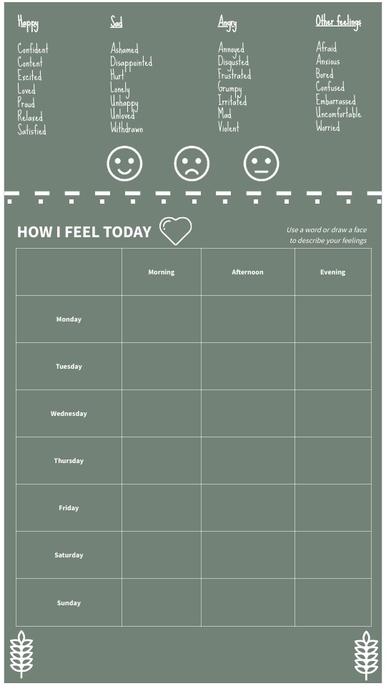 Other feelings Afraid Anxious Bored Confused Embarrassed Uncomfortable Worried