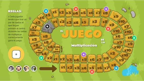 1 Cada jugador tendrá que tirar un par de dados el que llegue primero al centro diciendo las tablas de multiplicar correctamente gana el juego.